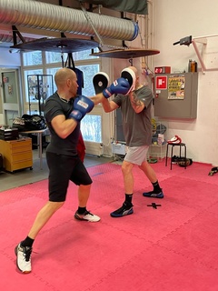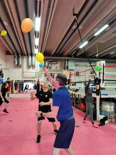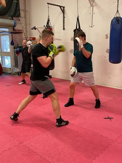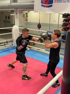 Lauantaisin kuntonyrkkeilyn vetää Vesa Korpaeus ja Marco Rahumets. Harjoitusten sisältö vaihtelee pariharjoitteluista välineharjoitteluun lihaskuntoa unohtamatta. Joskus treeni voi olla hyvinkin raskasta. Nämä miehet välittävät kaikista tasapuolisesti ja kannustus on sen mukaista ;-)