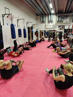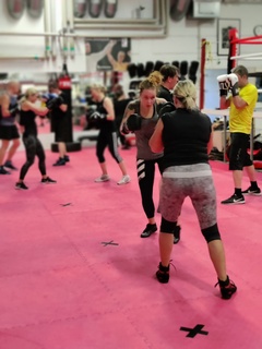 Mukaan tarvitset juomapullon sekä sisäliikuntaan soveltuvat vaatteet ja kengät. Kaikki harjoitteet tehdään yksin (esim. lyönnit ilmaan) ja lihaskuntoharjoitteisiin annetaan helpompia ja haastavampia vaihtoehtoja.