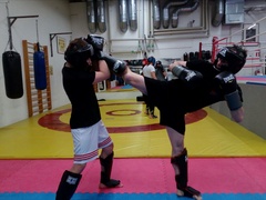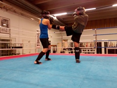 Potkunyrkkeily Tuusulan Nyrkkeilyseurassa Tuusulan Nyrkkeilyseura on Suomen Potkunyrkkeilyliiton jäsen. Seuramme järjestämässä potkunyrkkeilyissä pääpaino on kuntoilussa ja itsensä haastamisessa. Monipuolisia potku- ja lyöntitekniikoita tehdään parin kanssa, säkkeihin, potkutyynyihin tai pistehanskoihin. Näiden lisäksi tunneilla tehdään monipuolisesti lihaskunto- ja liikkuvuusliikkeitä. Otteluharjoituksia ja "sparria" on osana harjoituksia vapaaehtoisena osiona. Vyökokeita on suoritettu joko seurassa järjestettävissä vyökokeissa tai Potkunyrkkeilyliiton järjestämillä lisenssin edellyttämillä leireillä. Harjoittelemme kaksi kertaa viikossa tiistaisin ja torstaisin. Tiistaina Jannen ja Tarmon vuorotellen vetämä treeni koostuu tehokkaista lyönti- ja potkukombinaatioista, lisäksi kehonhallinta sekä potkutekniikat ovat Jannen harjoituksissa painopisteitä. Tarmon tunneilla monipuoliset kombinaatiot ja perustekniikat ovat pääosissa ja treenissä on vapaaehtoisilla mahdollisuus myös sparrata. Torstaina Akin treeneissä treenataan lihaskuntoa, silmän ja käden koordinaatiota, räjähtävyyttä ja sekä perus- että ottelunomaisia tekniikoita; tunnilla on mahdollisuus halutessaan sparrata. Treeneihin voi tulla potkunyrkkeilyn perustaidot omaavat vaikka kesken kauden, harjoittelun tulee olla turvallista ja perustekniikat käydään läpi ennen harjoittelun aloittamista. Alaikäraja on 13 vuotta ja tarvittavat varusteet löydät täältä. Kuntopotkunyrkkeilyryhmää vetävät Janne Tuovinen, Aki Puolakka ja Tarmo Asikainen. |